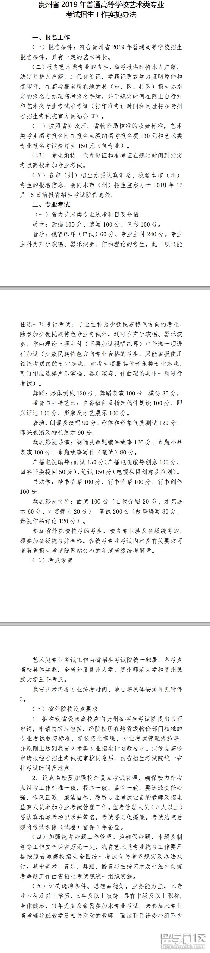 貴州2019普通高等學(xué)校藝術(shù)類專業(yè)考試招生工作實(shí)施辦法