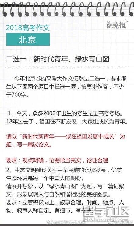 今年北京卷的高考大作文仍然是二選一,要求考生從下面兩個(gè)題目中任選一題。