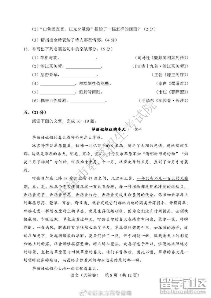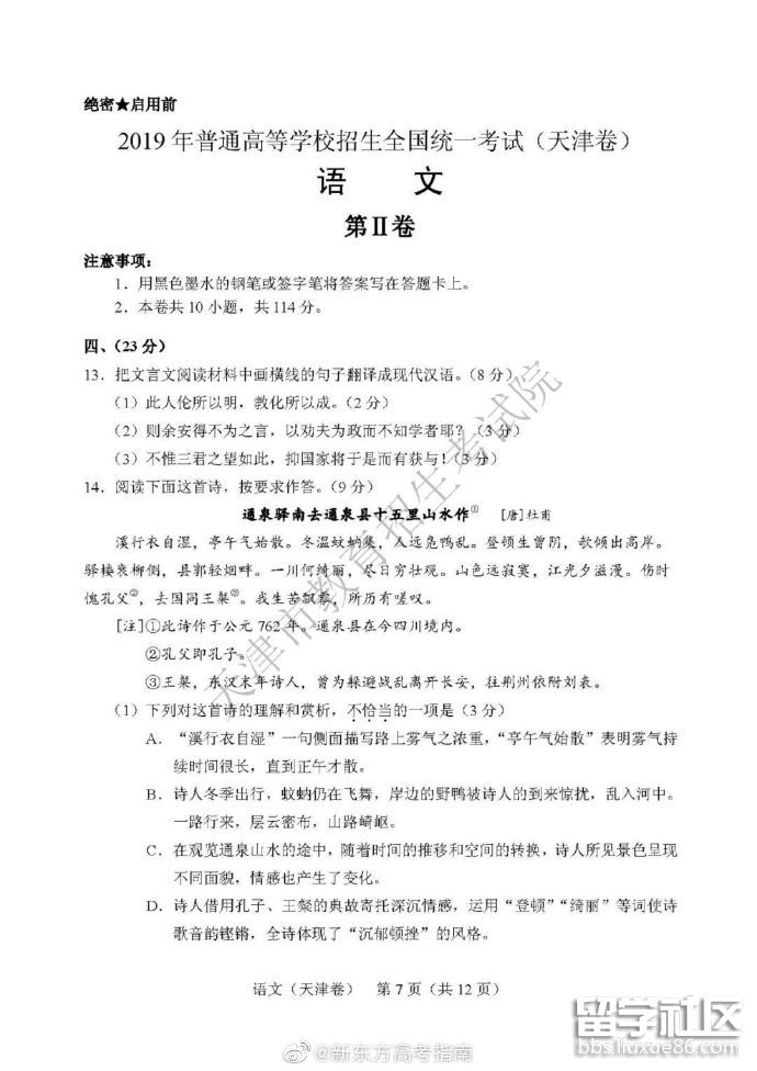 每個(gè)人的一生都會(huì)經(jīng)歷大大小小的考試,高考就是其中的一個(gè)大試煉,唯有全力以赴,才能不讓自己感到后悔!本文《2019年天津高考語(yǔ)文真題及答案(圖片版)》由高考欄目提供,出國(guó)留學(xué)網(wǎng)愿你高考思路如泉涌,下筆如有神!