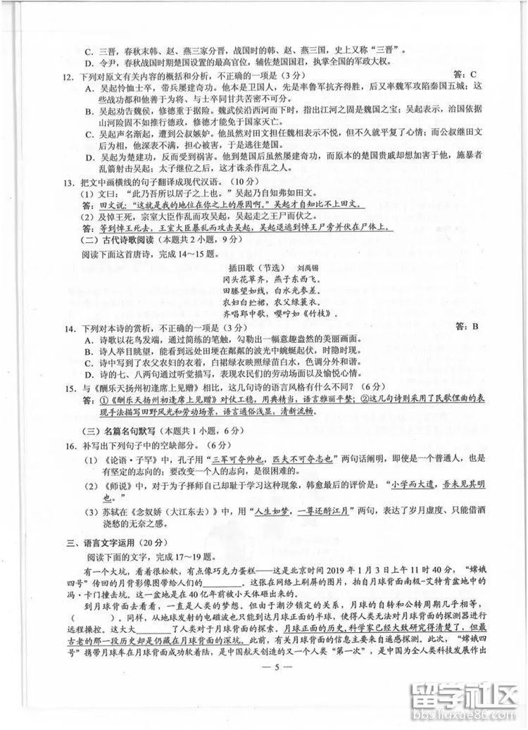 2019全國高考真題及答案專題(考后更新)