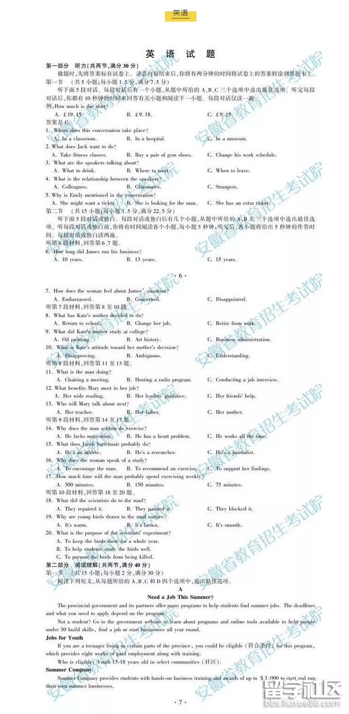 六月注定是一個(gè)不平凡的月份,高考如約來臨。十多年的苦讀,終于迎來了檢驗(yàn),這時(shí)候可不能亂了心神,唯有保持好自己的心態(tài),才能在考試中取得佳績!出國留學(xué)網(wǎng)高考頻道帶來2019年江西高考英語試卷及答案(圖片版),祝你高考大捷!