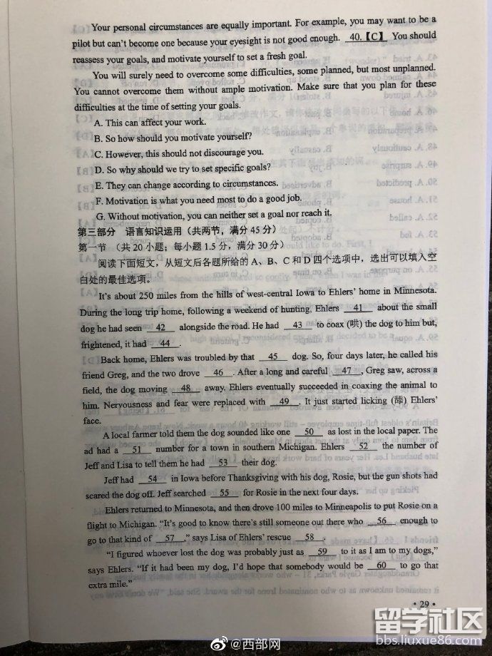 高考已經(jīng)迎來了結(jié)尾,相信大家對自己的考試情況都有了較為清楚的認(rèn)知,出國留學(xué)網(wǎng)高考頻道會及時為廣大考生提供2019年青海高考英語試卷及答案(圖片版),更多高考分?jǐn)?shù)線、高考成績查詢、高考志愿填報(bào)、高考錄取查詢信息等信息請關(guān)注我們網(wǎng)站的更新!
