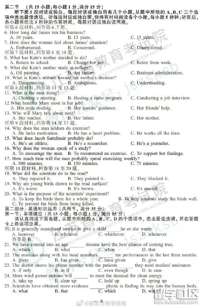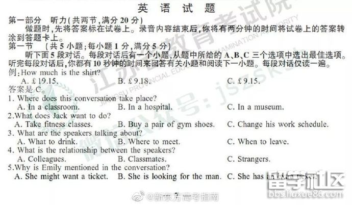 | 江蘇高考語文答案 | 江蘇高考數(shù)學(xué)答案 | 江蘇高考英語答案 | 江蘇高考理綜答案 | 江蘇高考文綜答案 |