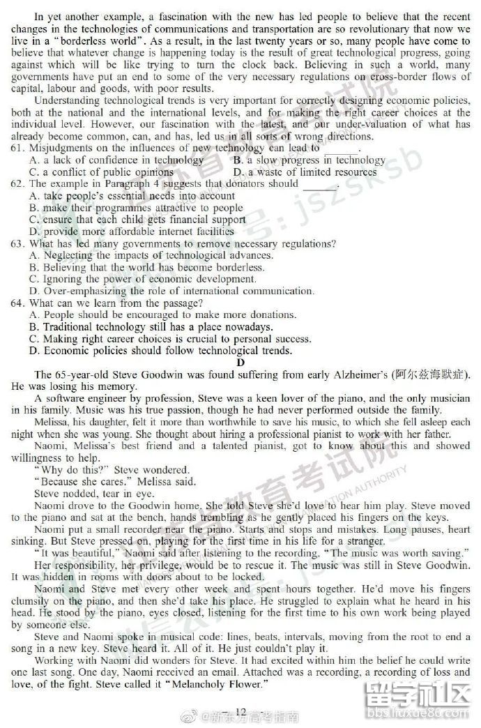 朋友,高考已經(jīng)結(jié)束,在考高中無論考得怎樣,請放寬心態(tài)。出國留學(xué)網(wǎng)高考頻道為大家提供2019年江蘇高考英語試卷答案,想咨詢更多高考內(nèi)容,請關(guān)注我們網(wǎng)站更新!
