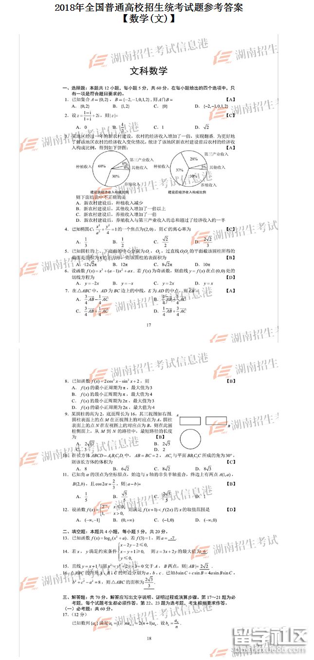 高考是夢想開始的地方,是人生重要的轉(zhuǎn)折點,每一個人對高考都有自己獨一無二的感受。2018 年高考已經(jīng)落幕,下面是出國留學(xué)網(wǎng)高考頻道為廣大考生提供《2018年安徽高考文科數(shù)學(xué)試卷及答案(圖片版)》。如果你想找的真題及答案沒有顯示,可按Ctrl+F5進行刷新! 更多高考分數(shù)線、高考成績查詢、高考志愿填報、高考錄取查詢信息等信息請關(guān)注本站的更新!