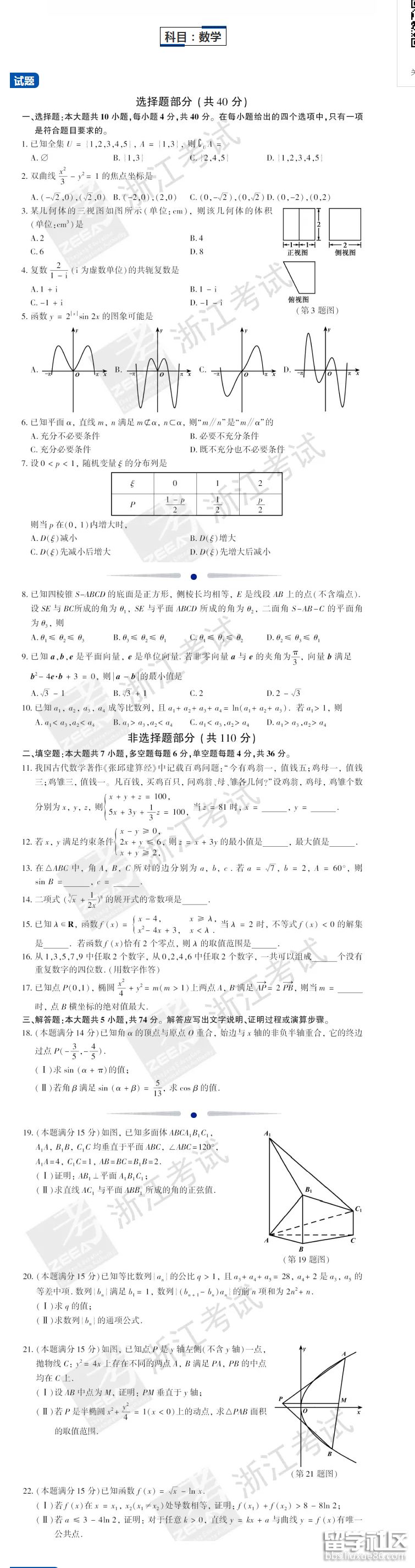 2018浙江高考數(shù)學(xué)試卷及答案