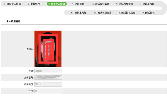 點(diǎn)擊流程中的“查看個(gè)人信息”,此時(shí)可以查看自己的完整個(gè)人信息和電子照片。