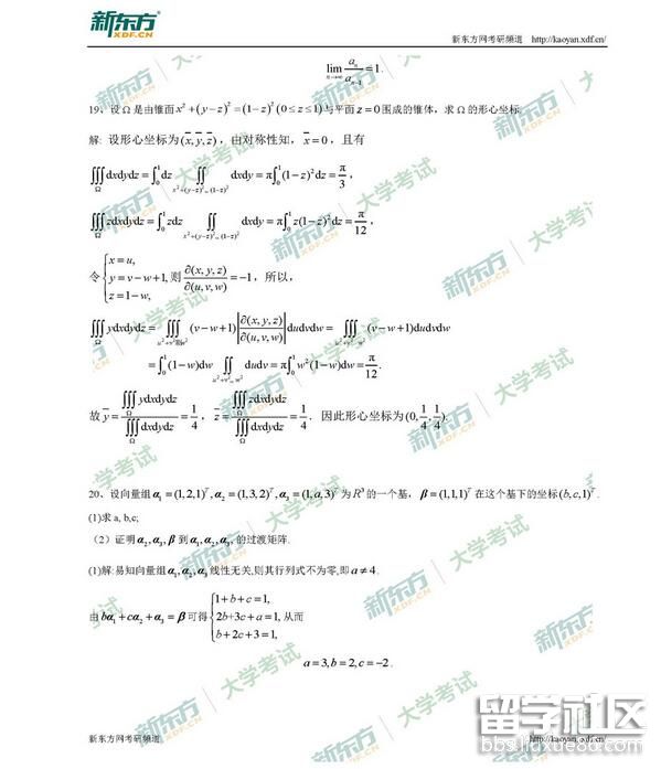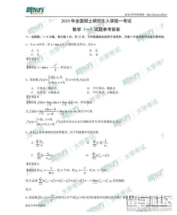 2019考研數(shù)學(xué)一答案