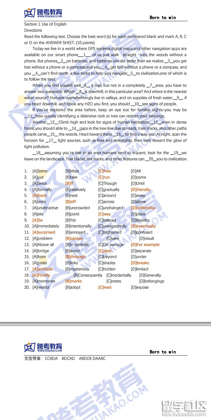 | 考研英語答案 | 考研數(shù)學(xué)答案 | 政治答案 |