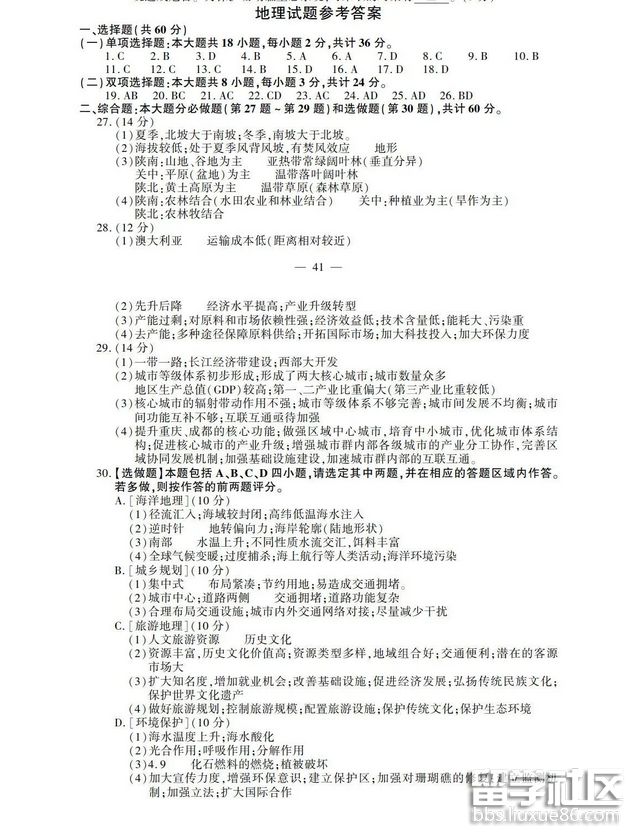 2018江蘇高考地理答案已公布