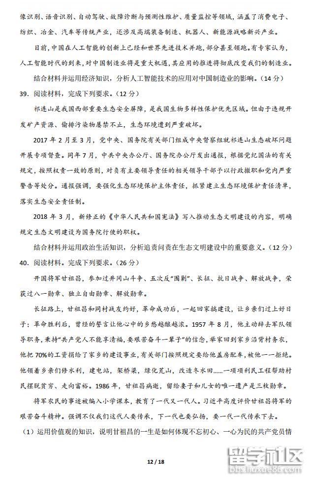 2018年全國(guó)卷3高考文綜試題及答案已公布