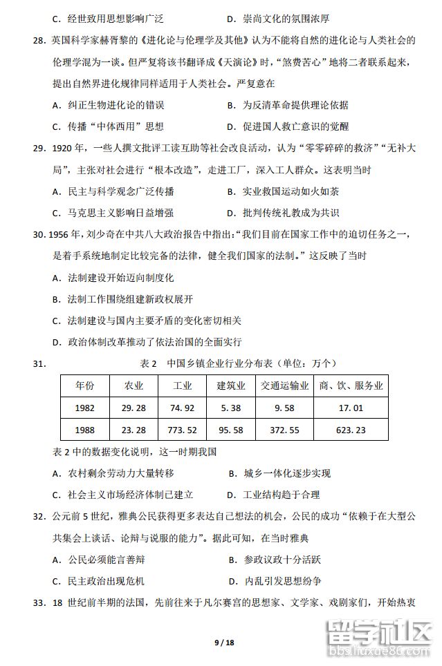 2018各省市高考文綜真題及答案匯總