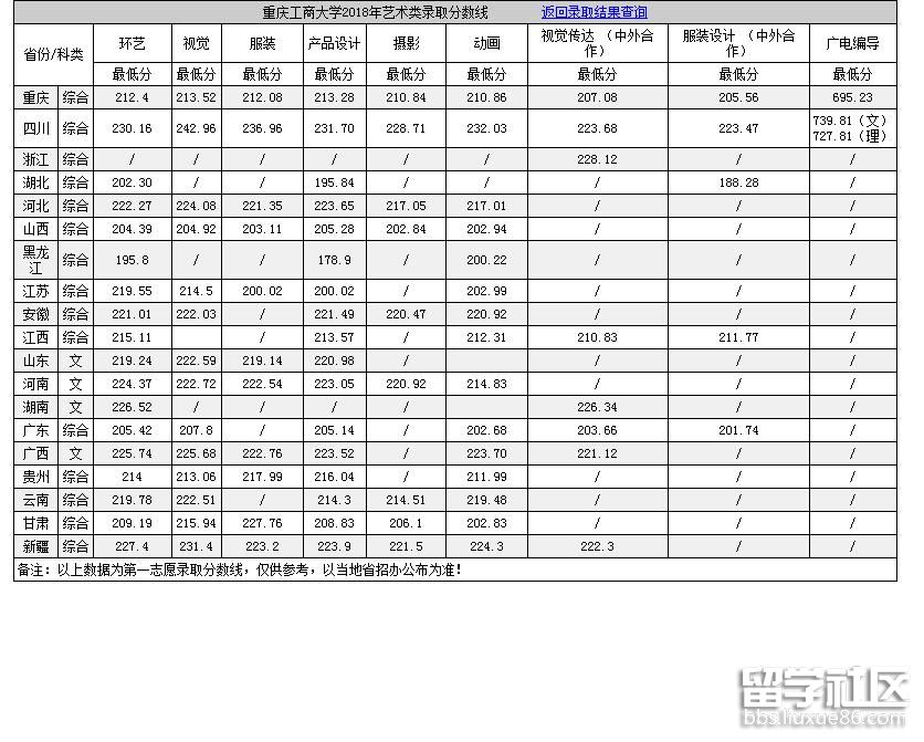 重慶工商大學(xué)2018年藝術(shù)類高考錄取分?jǐn)?shù)線