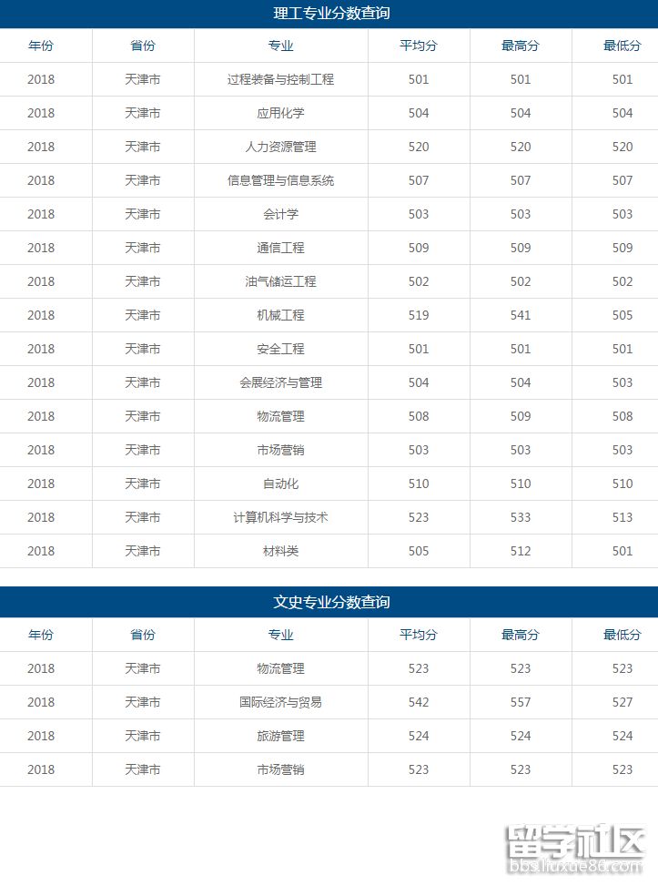 北京石油化工學(xué)院2018各專業(yè)高考分?jǐn)?shù)線(天津)