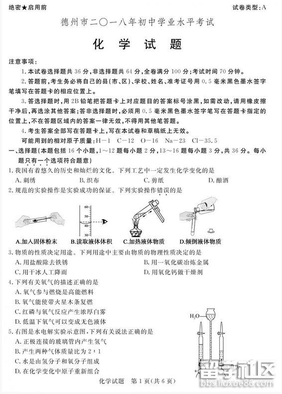 不管結果怎樣,經(jīng)歷過,總會有結果的!出國留學網(wǎng)為您整理《山東德州2018年中考化學真題》,希望給您帶來幫助!更多相關資訊請繼續(xù)關注本網(wǎng)站的更新!在這里祝您順利通過考試!
