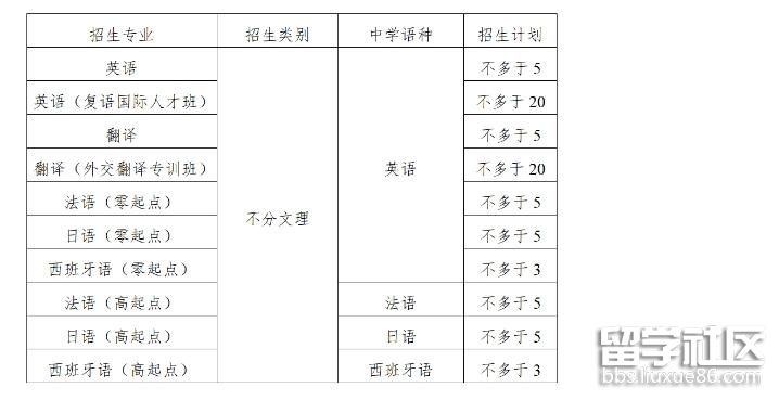 第六條 經(jīng)教育部批準(zhǔn)具有推薦保送生資格的外國(guó)語中學(xué)中具備外語類保送生資格,符合當(dāng)年高考報(bào)名條件,身心健康,品學(xué)兼優(yōu),德智體美勞全面發(fā)展,有志于從事外交外事、國(guó)際問題研究和涉外經(jīng)濟(jì)、文化、法律工作的應(yīng)屆高中畢業(yè)生。