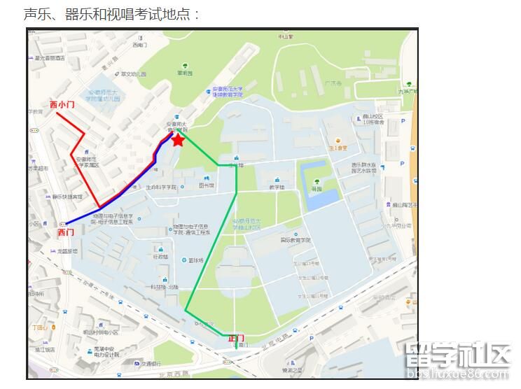 練耳和樂(lè)理考試地點(diǎn)為安徽師范大學(xué)花津校區(qū)(蕪湖市九華南路189號(hào))行知樓。