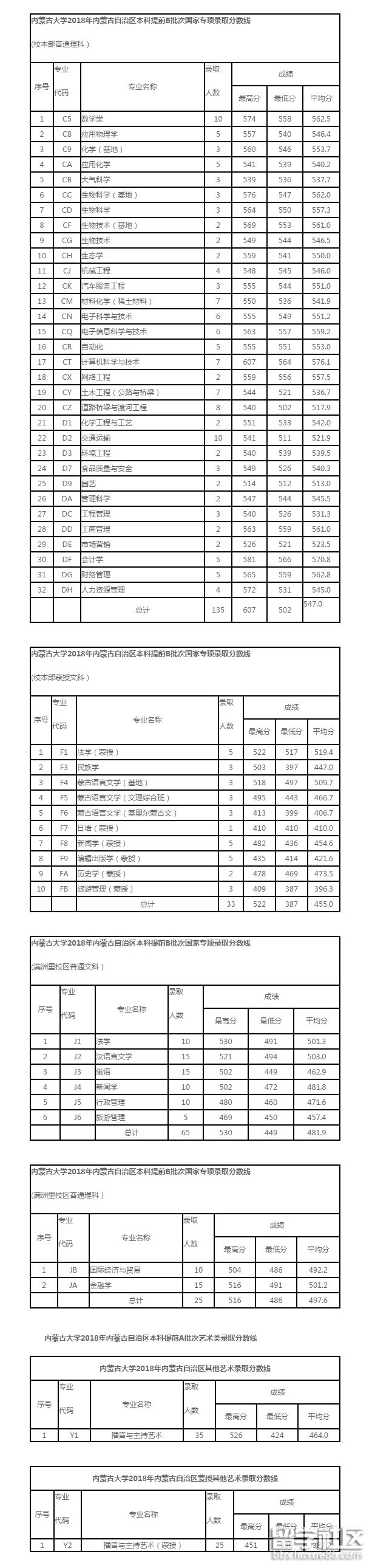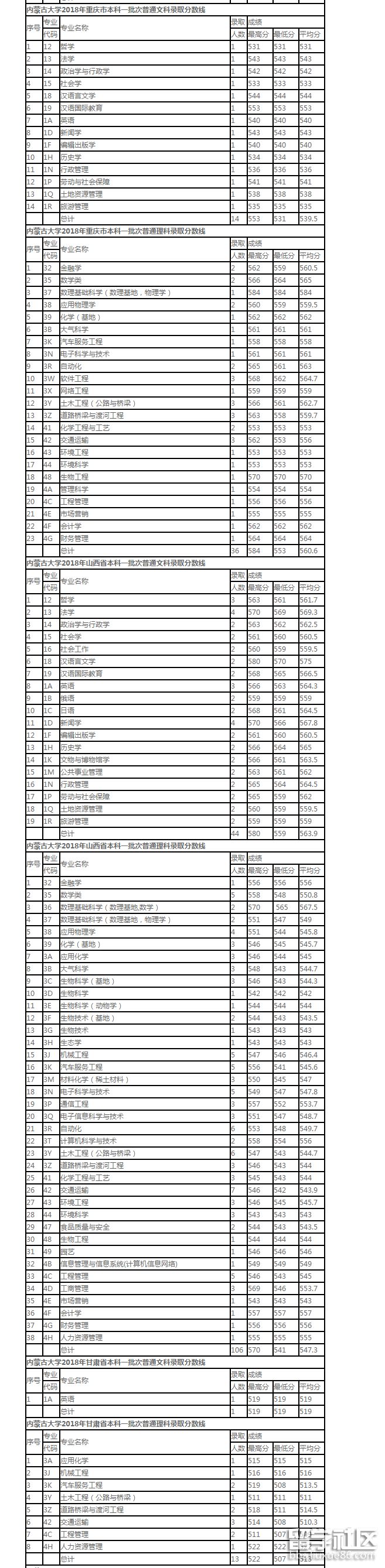 內(nèi)蒙古大學(xué)2018年各省市高考分?jǐn)?shù)線