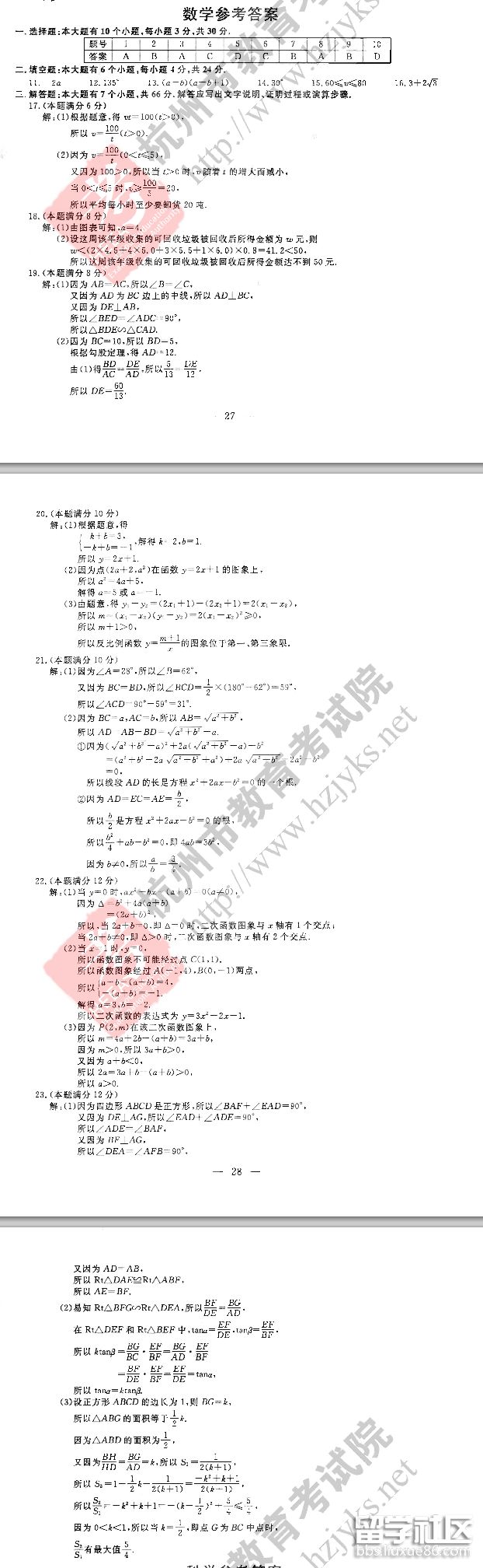2018杭州中考數(shù)學(xué)試題及答案