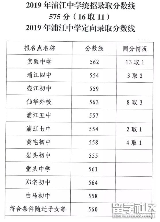 2019年浦江中學(xué)統(tǒng)招錄取分?jǐn)?shù)線和定向錄取分?jǐn)?shù)線已出,普通高中最低控制分?jǐn)?shù)線460分。具體如下: