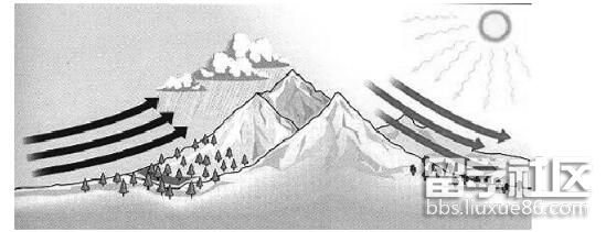 D.翻過山脈后氣流溫度會(huì)有所上升