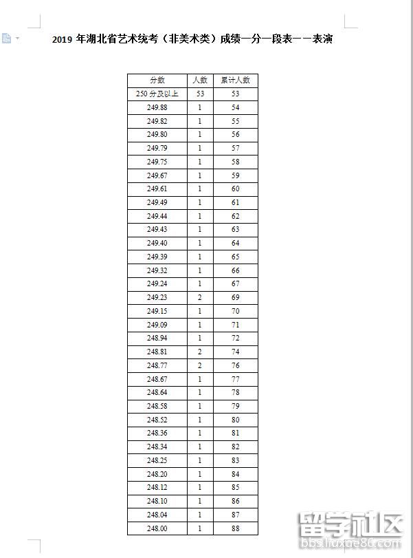 2019湖北表演統(tǒng)考成績(jī)一分一段表