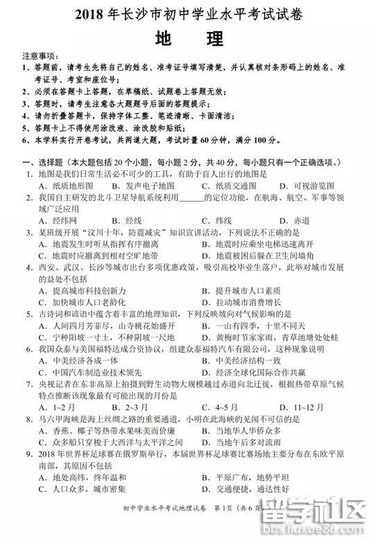 只要付出了辛勤的勞動,總會有豐碩的收獲!出國留學(xué)網(wǎng)為大家提供《2018年湖南長沙中考地理試題及答案》,更多資訊請關(guān)注我們網(wǎng)站的更新!