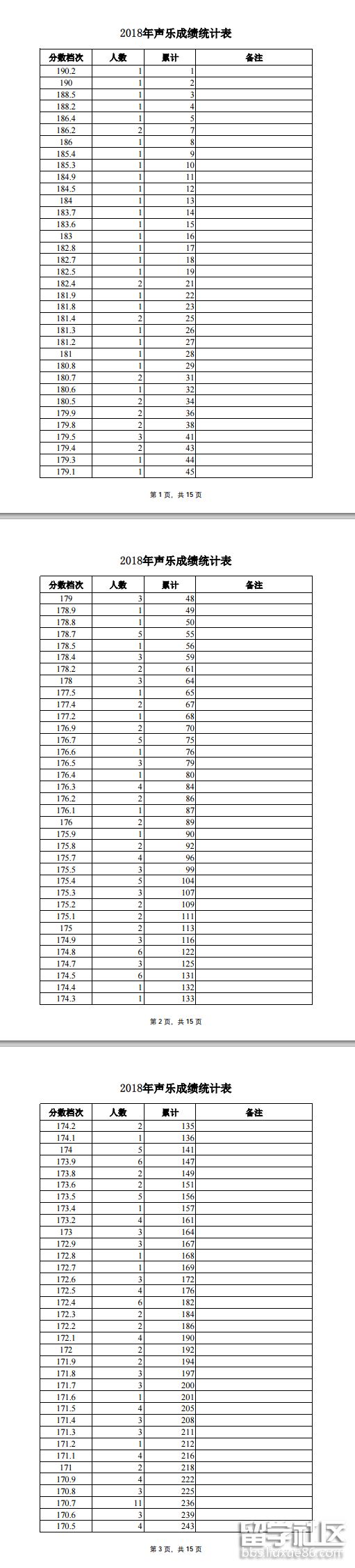 2018河北普通高校招生聲樂成績統(tǒng)計(jì)表