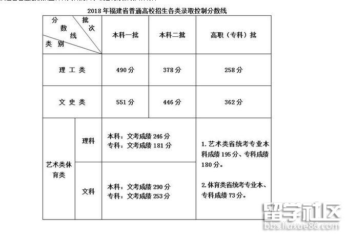 福建2018高考體育類分?jǐn)?shù)線公布