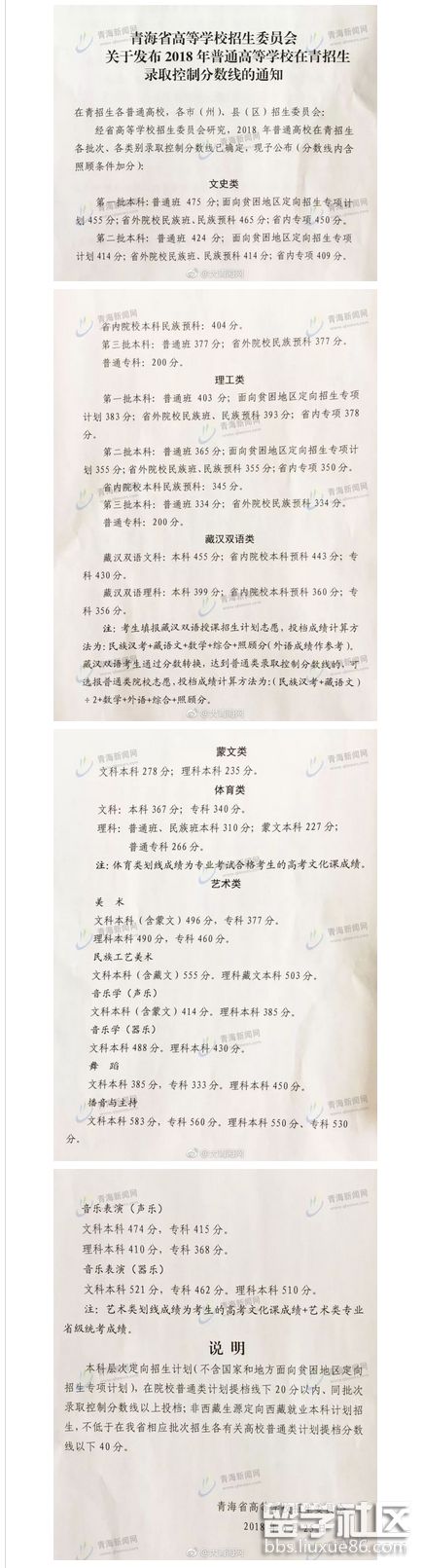 2018年青海高考分數(shù)線公布,其中,一本文475分,一本理403分; 二本文424分,二本理365分。詳細如下: