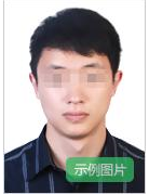(一)網(wǎng)上報名??忌卿浿行W教師資格考試網(wǎng)進行報名??忌卿浐蟀聪嚓P(guān)提示進行注冊,填報個人信息,上傳本人照片,選擇考試科目和考區(qū),點擊“報名”(未能填報好相關(guān)信息并點擊“報名”的,將不能再報名)。照片為本人近6個月以內(nèi)正面彩色證件照,白色背景;不允許戴帽子、頭巾、發(fā)帶、墨鏡;照片中顯示考生頭部和肩的上部,照片上應(yīng)該看到人的額頭及兩耳輪廓;照片不大于200K,jpg/jpeg格式。照片將用于準考證以及考試合格證明,請考生慎重選用。照片不合格的考生將不能通過審核。照片示例如下: