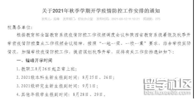 1.學校原則上按既定時間8月27日—9月2日陸續(xù)錯峰開學,2021級新生按照學校錄取通知書通知時間報到。