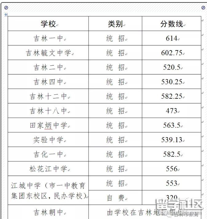 2020吉林市中考各高中錄取分數線【通知】