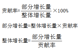 (3)對(duì)于一個(gè)整體中的各個(gè)部分來(lái)說(shuō),部分增長(zhǎng)量越大,其貢獻(xiàn)率越大。