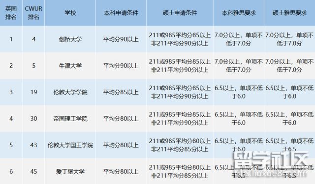 二、TOP50的6所英國大學(xué)的入學(xué)條件與雅思要求