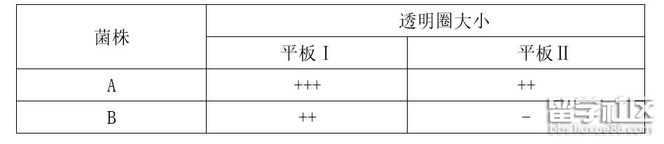 (3) 為了比較 A、 B 降解石油的能力,某同學(xué)利用步驟②所得到的平板Ⅰ、Ⅱ進(jìn)行實(shí)驗(yàn),結(jié)果如表所示(“+”表示有透明圈,“+” 越多表示透明圈越大,“-”表示無透明圈),推測(cè)該同學(xué)的實(shí)驗(yàn)思路是_______________。