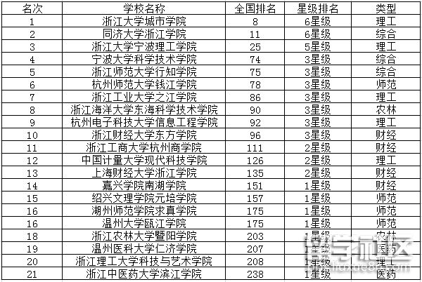| 1 | 浙江大學(xué)城市學(xué)院 | 8 | 6星級(jí) |
