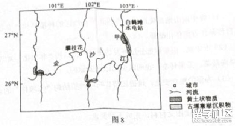 (3)白鶴灘水電站蓄水后,甲地谷底有部分被淹沒,該地的黃土狀物質(zhì)沉積速率能減小還是增大?表明你的觀點并說明理由。(4分)