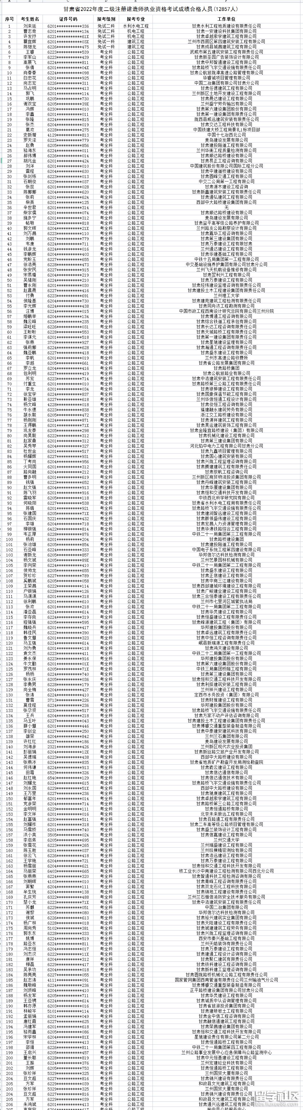 完整合格名單點擊下載:甘肅省2022年度二級注冊建造師執(zhí)業(yè)資格考試成績合格人員(12857人).xls