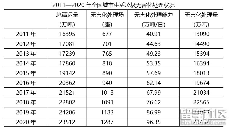 B.2020年,無害化處理場(chǎng)數(shù)量比2011年翻了一番