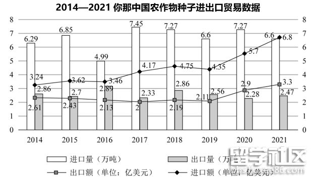 116.2014—2021年間,我國(guó)農(nóng)作物種子進(jìn)出口貿(mào)易逆差超2億美元的年份有幾個(gè):