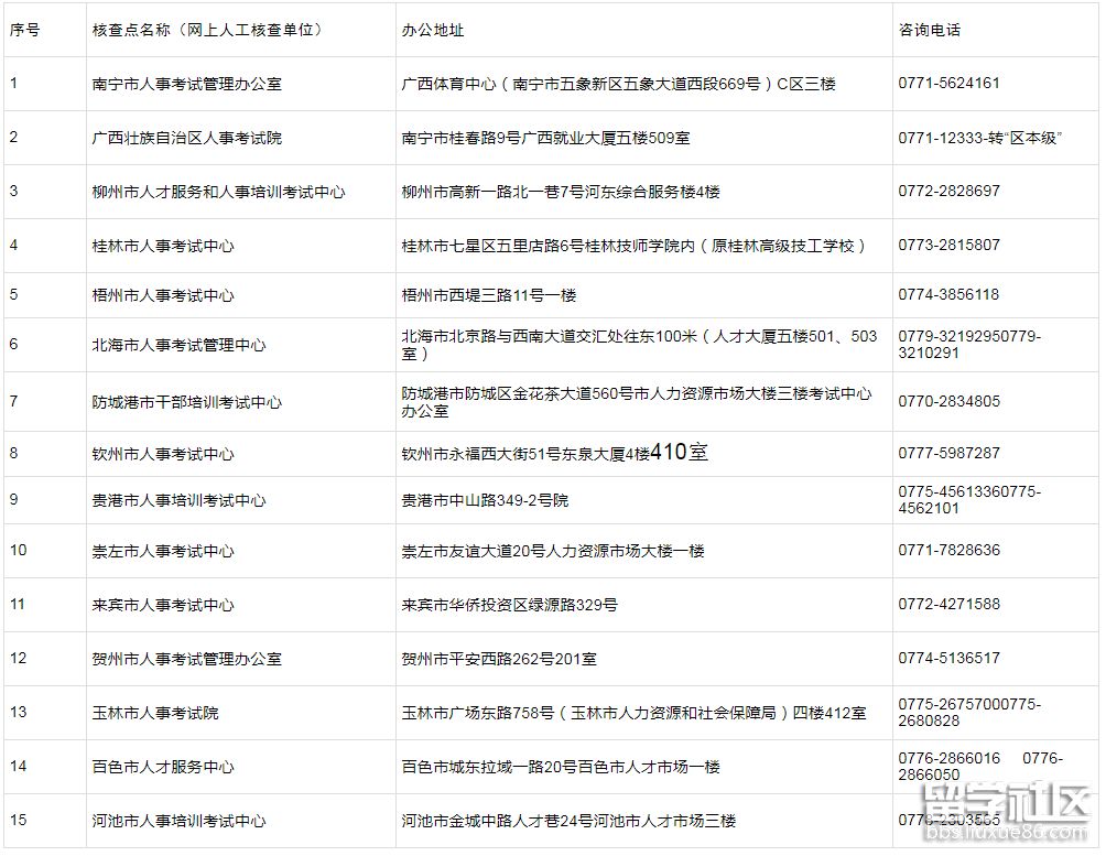 全區(qū)人事考試機(jī)構(gòu)(核查點(diǎn))地址及聯(lián)系方式如下: