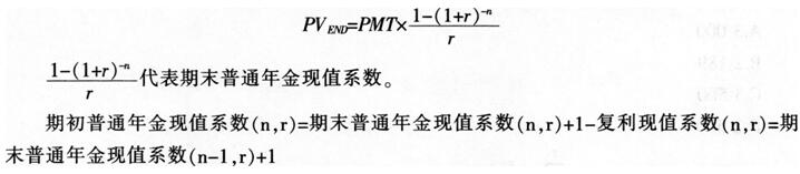 期初普通年金終值系數(shù)(n,r)=期末普通年金終值系數(shù)(n,r)-1+復(fù)利終值系數(shù)(n,r)=期末普通年金終值系數(shù)(n+1,r)-1