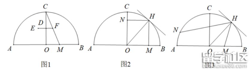 (3)如圖,M是線段OB上的動(dòng)點(diǎn),MH為入射光線,∠HOM=50°,HN為反射光線交圓O于點(diǎn)N,在M從O運(yùn)動(dòng)到B的過(guò)程中,求N點(diǎn)的運(yùn)動(dòng)路徑長(zhǎng).