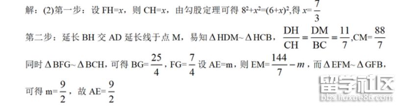 (2)探究:如圖,在矩形ABCD中,E為AD邊上一點(diǎn),且AD=8,AB=6,將AEB沿BE翻折至BEF處,延長(zhǎng)EF交BC于點(diǎn)G,延長(zhǎng)BF交CD于點(diǎn)H,且FH=CH,求AE的長(zhǎng);