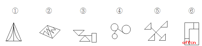 例題:把下面的六個圖形分為兩類,使每一類圖形都有各自的共同特征或規(guī)律,分類正確的一項是: