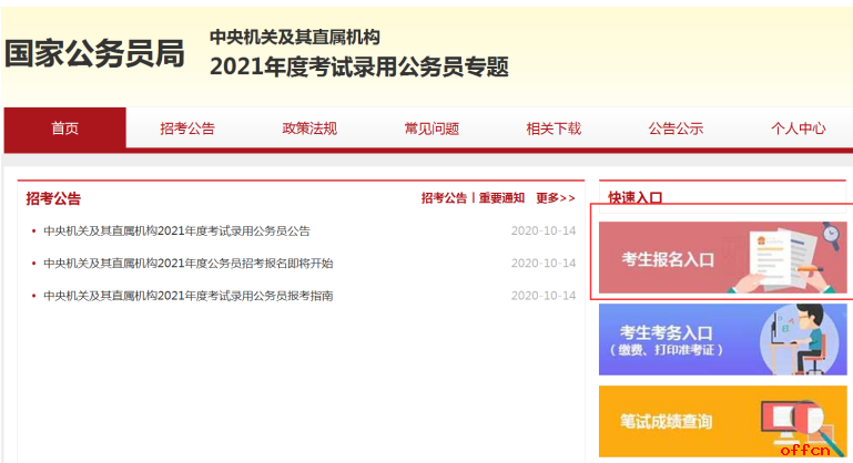 1.考生要認真對待報名注冊工作,一步一步走,不要心急,先進入國家公務(wù)員考試專題(http://bm.scs.gov.cn/pp/gkweb/core/web/ui/business/home/gkhome.html)點擊“考生報名入口”,如下圖。