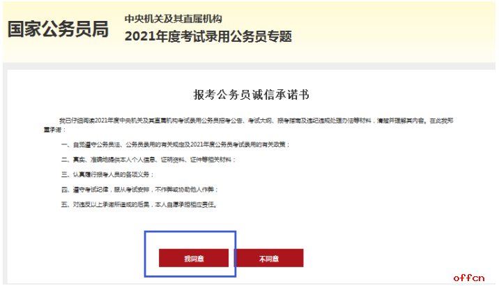 點擊“注冊新用戶”之后會出現(xiàn)誠信報考這一頁,考生們在認真閱讀后點擊“我同意”,
