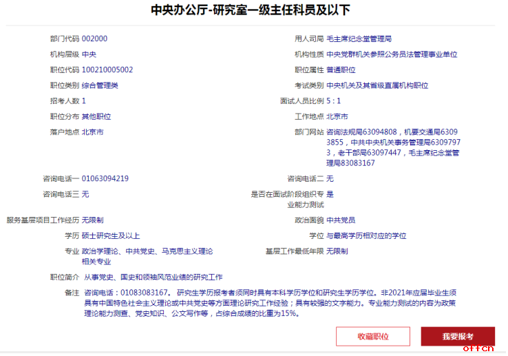 10、點擊“查詢”之后,會出現(xiàn)該職位的詳細信息,如下圖: