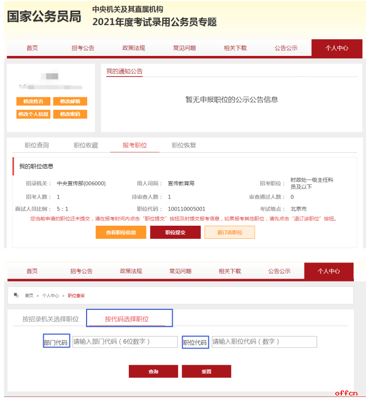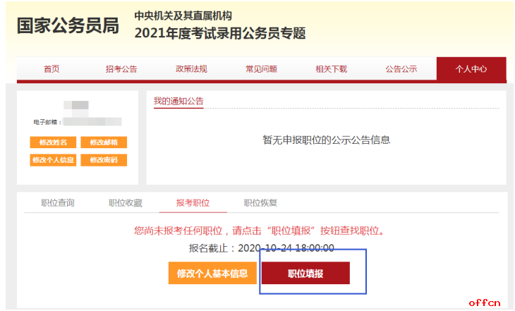11、選好職位之后再提交,會出現(xiàn)兩種情況,一是個人信息完全符合順利通過,二是信息不符被駁回,需要重新填寫個人信息。